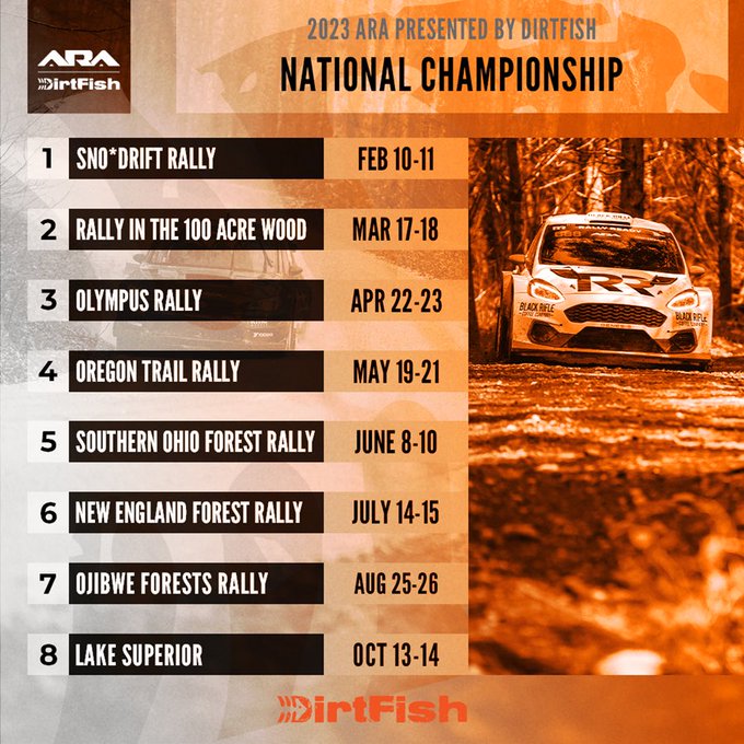 Provisional 2022 American Rally Association Presented by DirtFish National Championship schedule. One of the jewels of the US rally calendar the rally is characterized by fast straight and sweeping corners with a high average speed. Championship Events SnoDrift Rally Associated Events.
